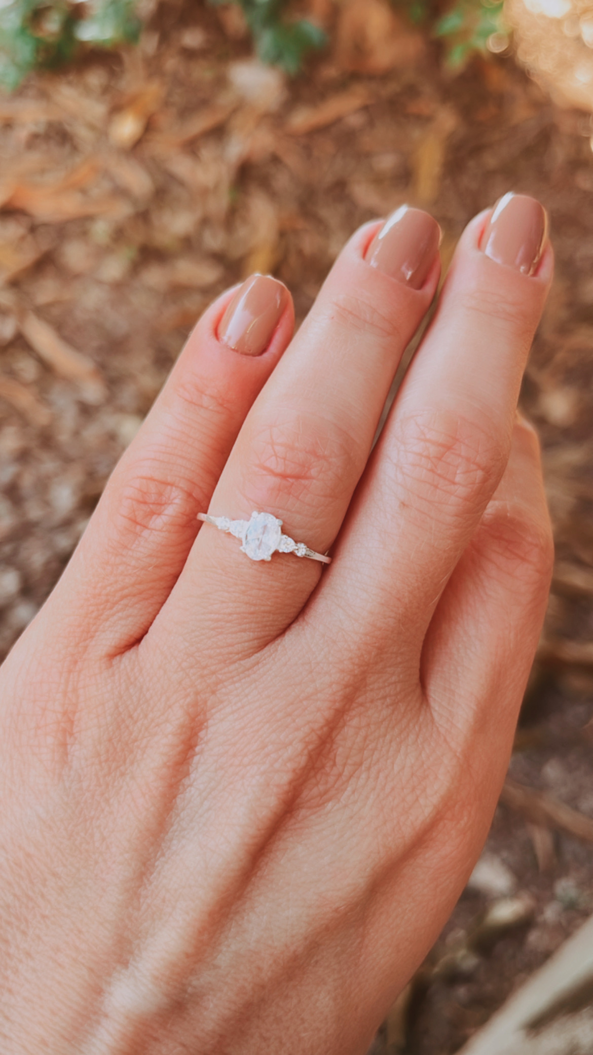 Anel zircônia oval cravejado.